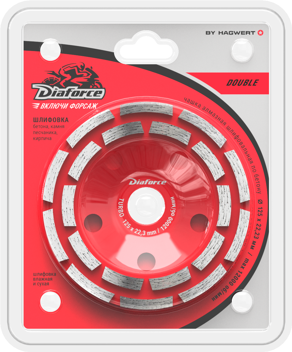 Чашка алмазная шлифовальная Сегментная двухрядная 125х22,23 мм DIAFORCE DOUBLE 520002