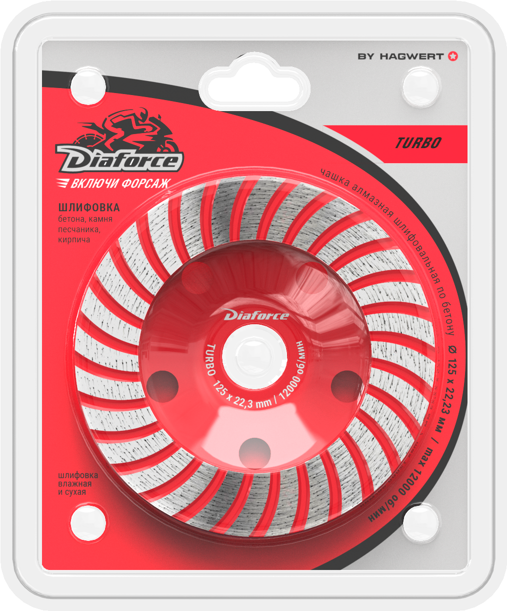 Чашка шлифовальная алмазная Турбо 125х22,23 мм DIAFORCE TURBO 520003