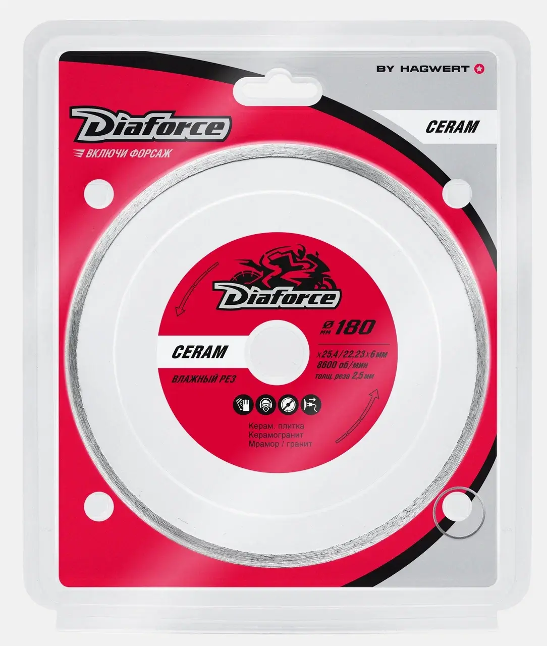 Диск алмазный CERAM 180х25,4/22,23х6х2,5 мм влажный рез DIAFORCE 503180X
