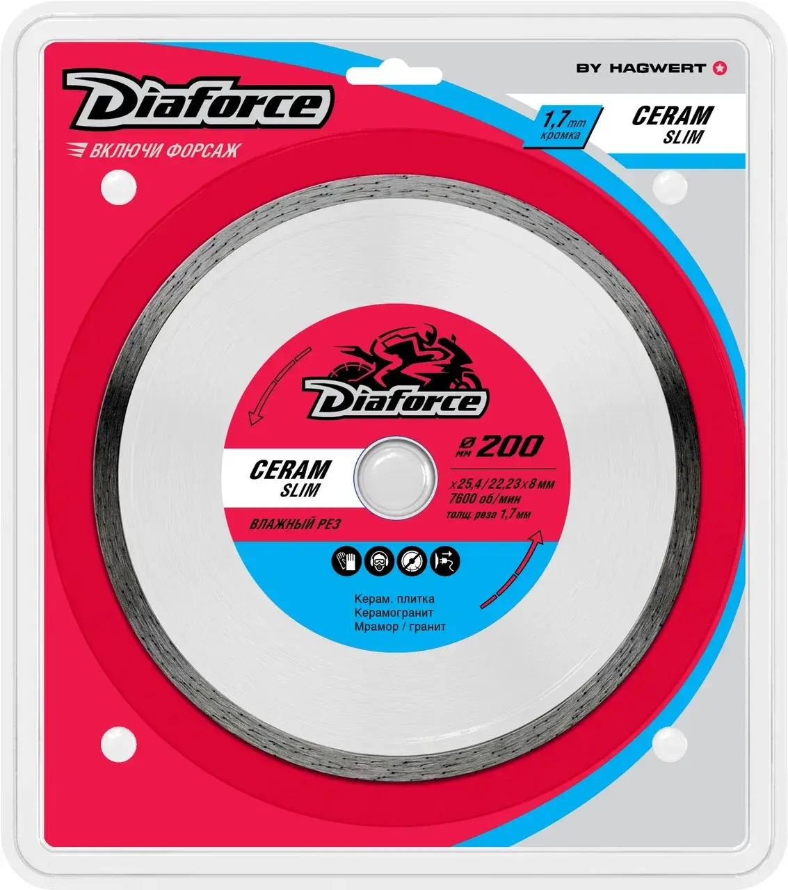 Диск алмазный CERAM SLIM 200x25,4/22.23x8x1.7 мм тонкий влажный рез DIAFORCE 514200S