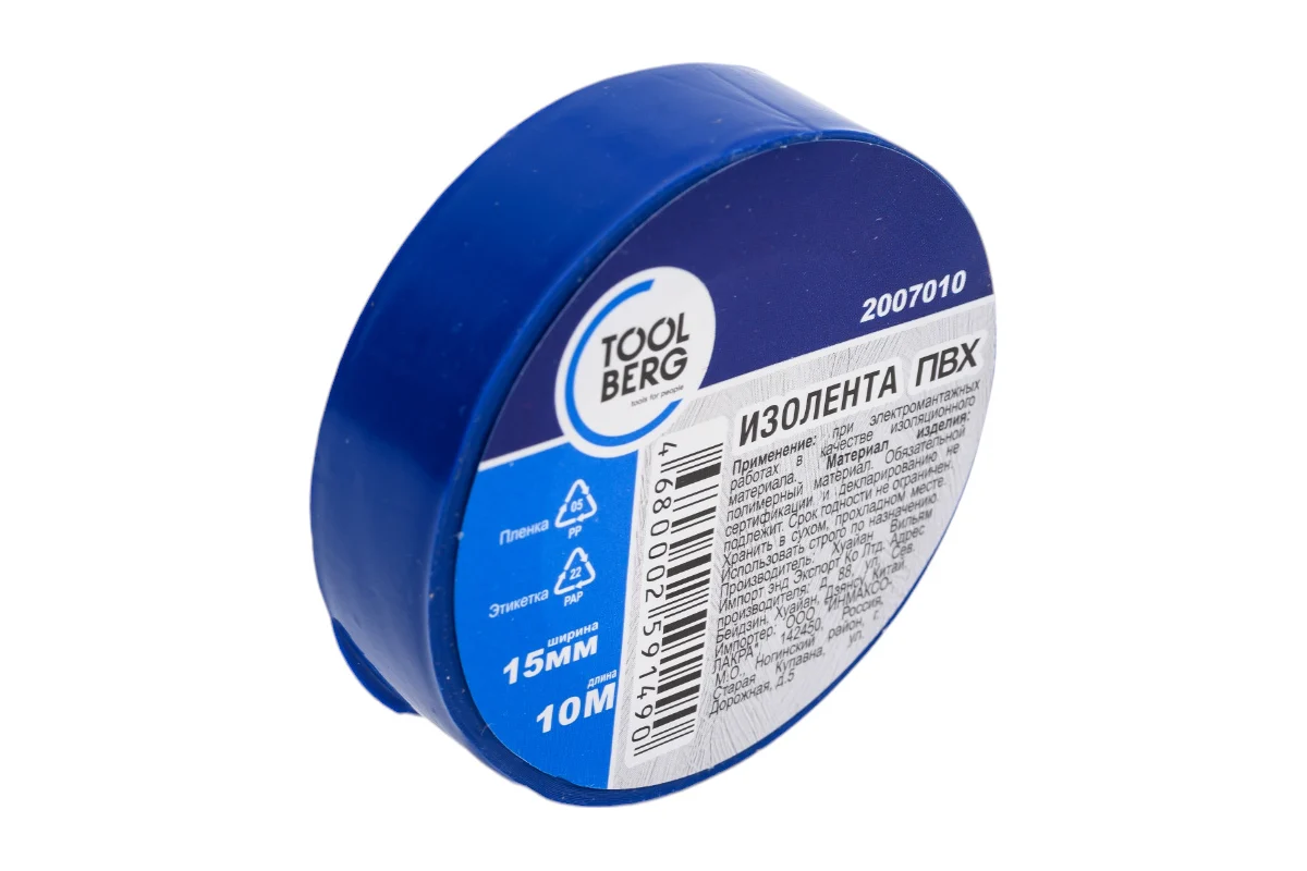 Изолента пвх синяя 15ммх10м TOOLBERG 2007010