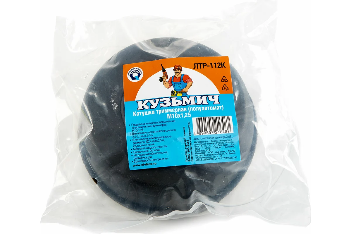 КУЗЬМИЧ Катушка триммерная (полуавтомат) ЛТР-112К черная с голубым
