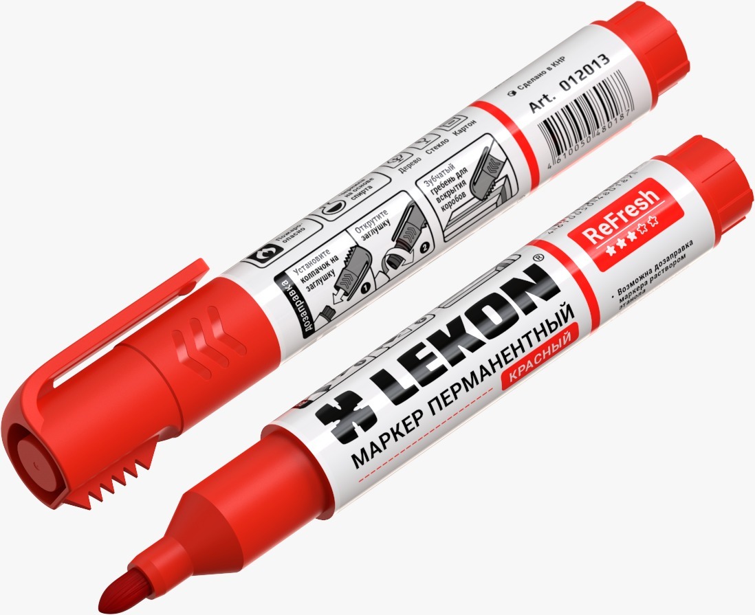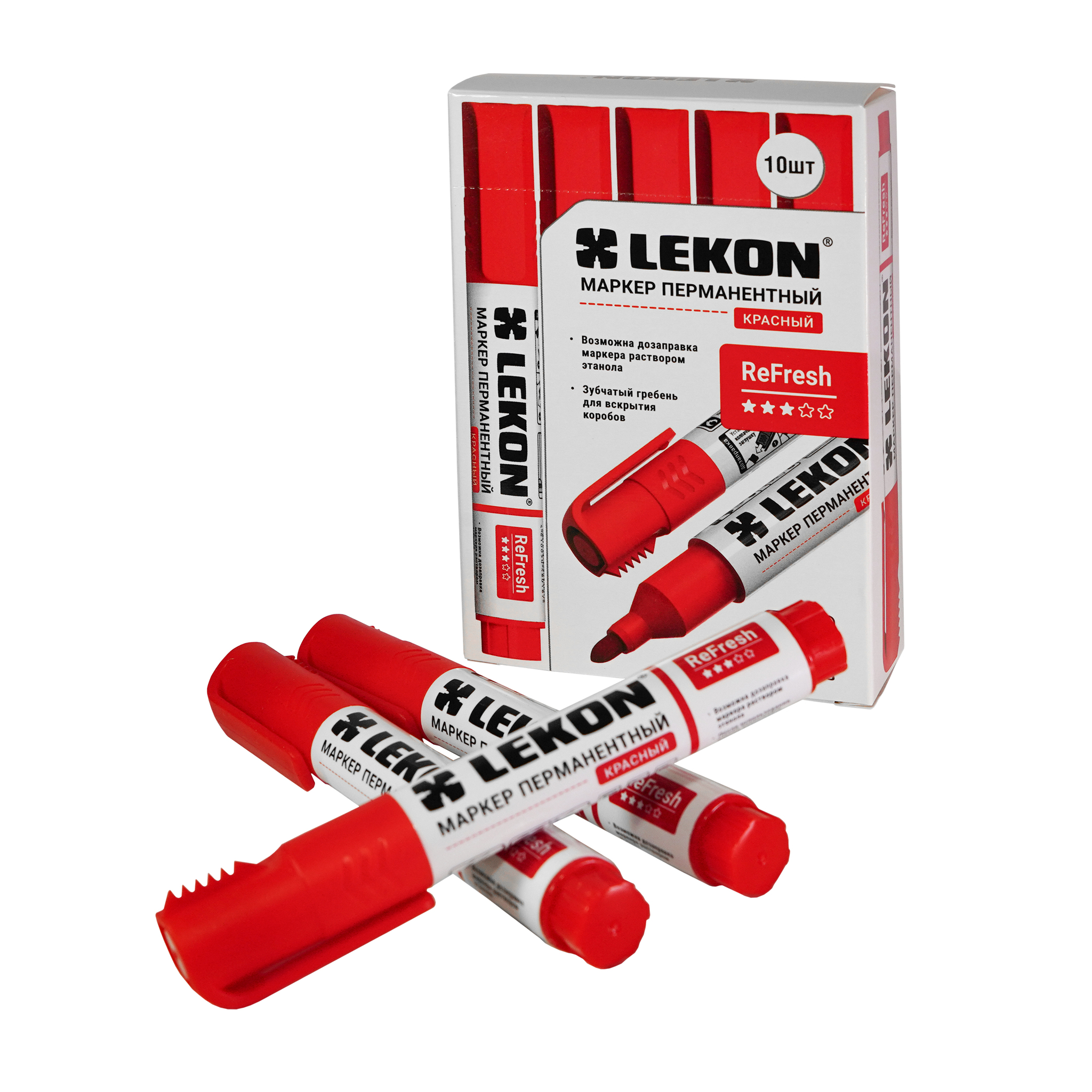 Маркер перманентный заправляемый Красный LEKON ReFresh 012013