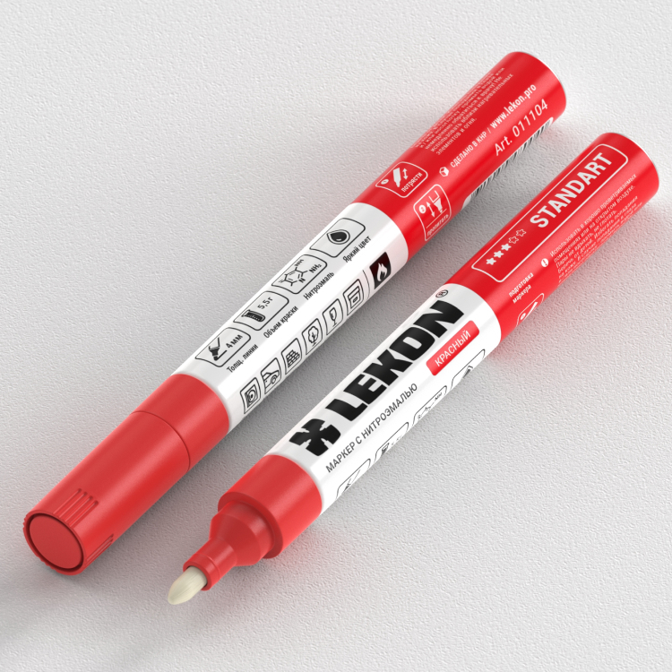 Standart 4 мм - маркер с нитроэмалью для нанесения промышленной маркировки на различных типах поверностей. Получили широкое применение при изготовлении металлоконструкций, проведении сварочных работ, в слесарных мастерских. В отличии от перманентных маркеров, разметка нанесенная маркеромкраской обладает более высокой укрывистостью и яркостью, а также повышенной устойчивостью к УФлучам и влаге.