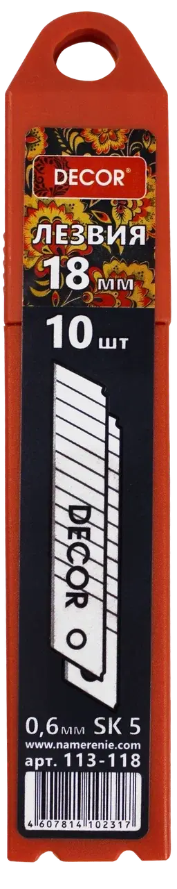 Набор лезвий 18мм, SK5 0,6 мм, для строительного ножа (10 шт) DECOR 113-118