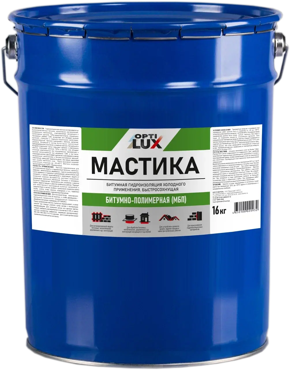 Мастика холодного применения предназначена для антикоррозионной защиты и гидроизоляции бетонных, кирпичных, каменных, металлических, деревянных, и других конструкций, в том числе надземных и подземных трубопроводов, металлических труб холодного и горячего водоснабжения и канализации; защита от почвенной коррозии фундаментов, мостовых сооружений, резервуаров различного назначения; битумных и полимерно-битумных поверхностей. Применяется для устройства и ремонта кровли, заделки трещин и швов при кровельных работах. Подходит для качественного приклеивания рулонных материалов и гидроизоляции в местах изгибов и примыканий элементов кровли (трубы, купола, сливы, воронки, ограждения и т.д.), подвижных частей элементов кровли, гидроизоляции бассейнов.