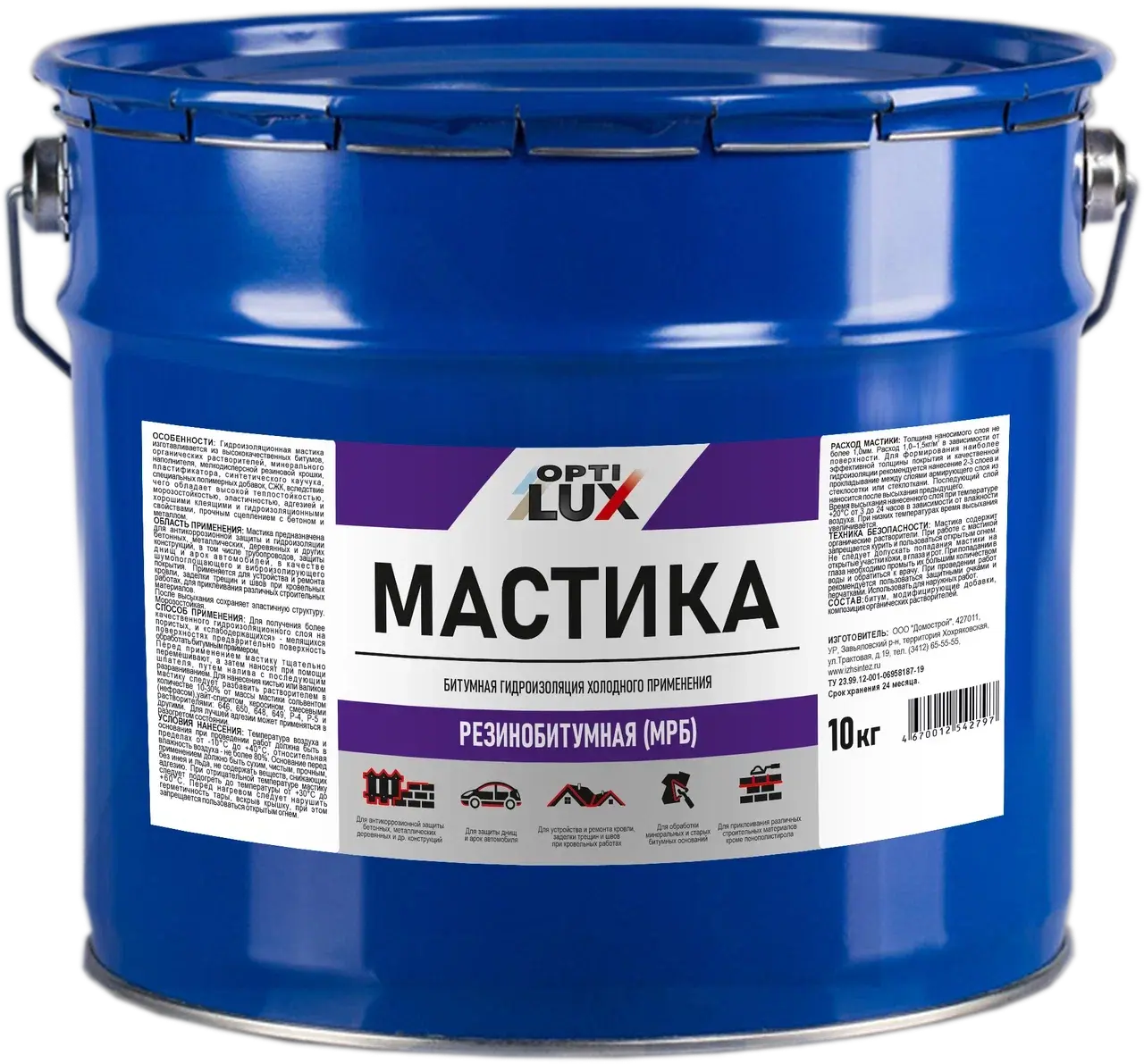 Предназначена для антикоррозионной защиты и гидроизоляции бетонных, металлических, деревянных и других конструкций, в том числе трубопроводов, защиты днищ и арок автомобилей, в качестве шумопоглощающего и виброизолирующего покрытия. Применяется для устройства и ремонта кровли, заделки трещин и швов при кровельных работах, для приклеивания различных строительных материалов.