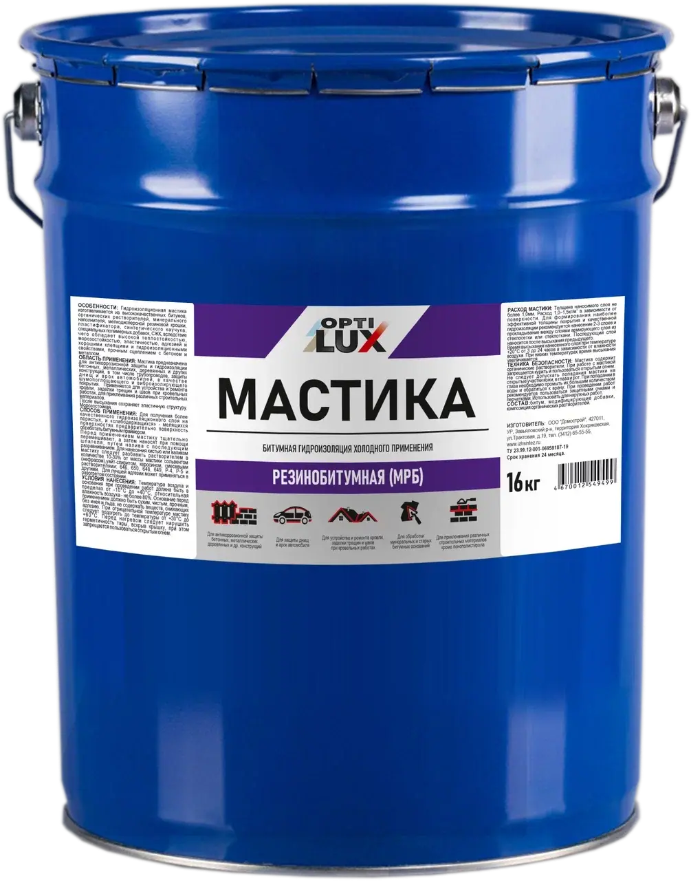Предназначена для антикоррозионной защиты и гидроизоляции бетонных, металлических, деревянных и других конструкций, в том числе трубопроводов, защиты днищ и арок автомобилей, в качестве шумопоглощающего и виброизолирующего покрытия. Применяется для устройства и ремонта кровли, заделки трещин и швов при кровельных работах, для приклеивания различных строительных материалов.