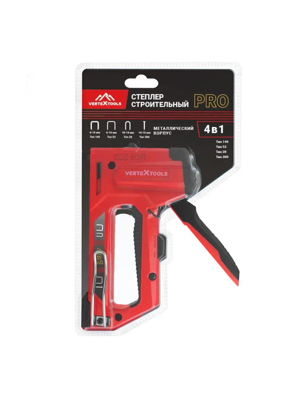 Пистолет скобозабивной многофункциональный 4в1 6-14мм (тип 140,53,36,28,300,500) VERTEXTOOLS 0043-06