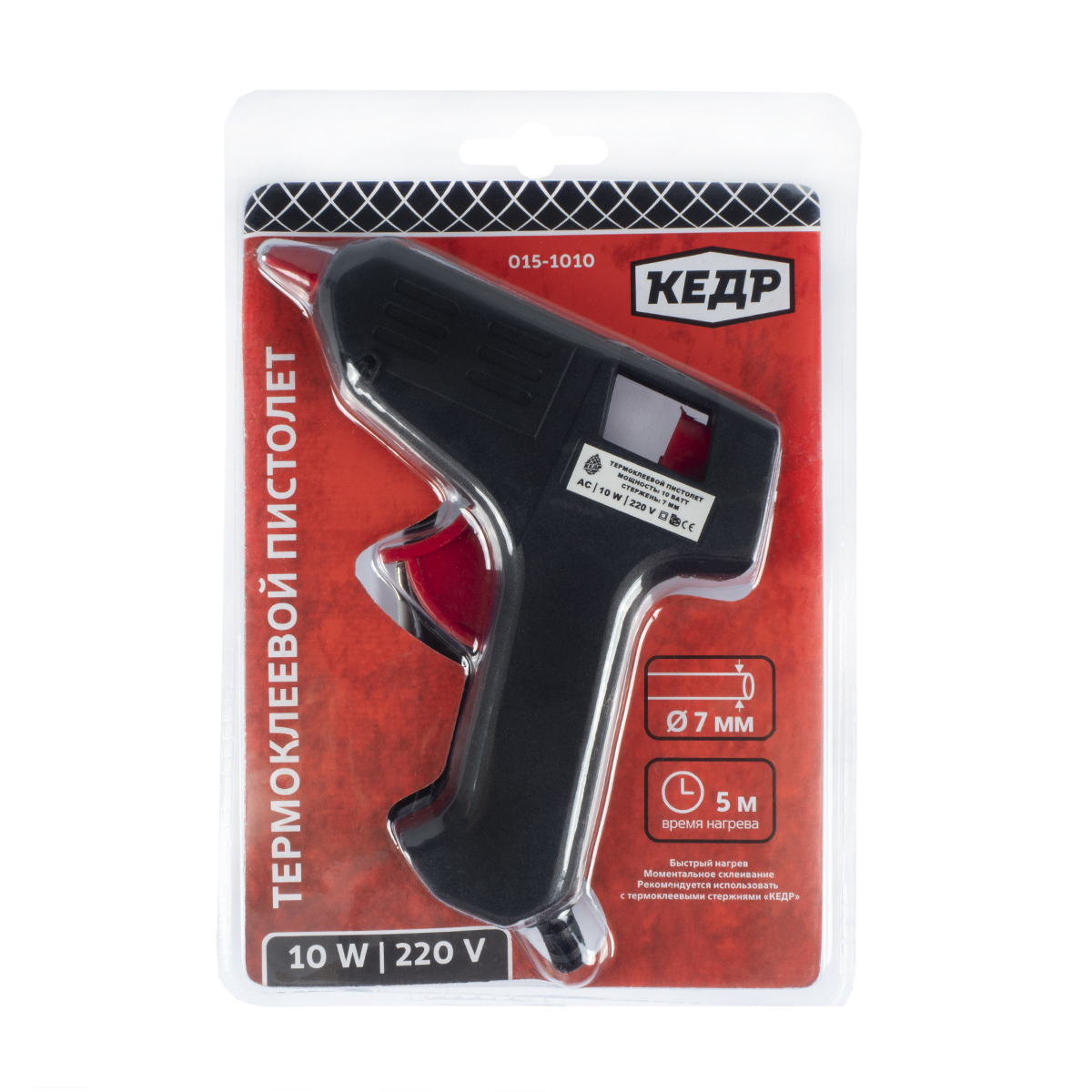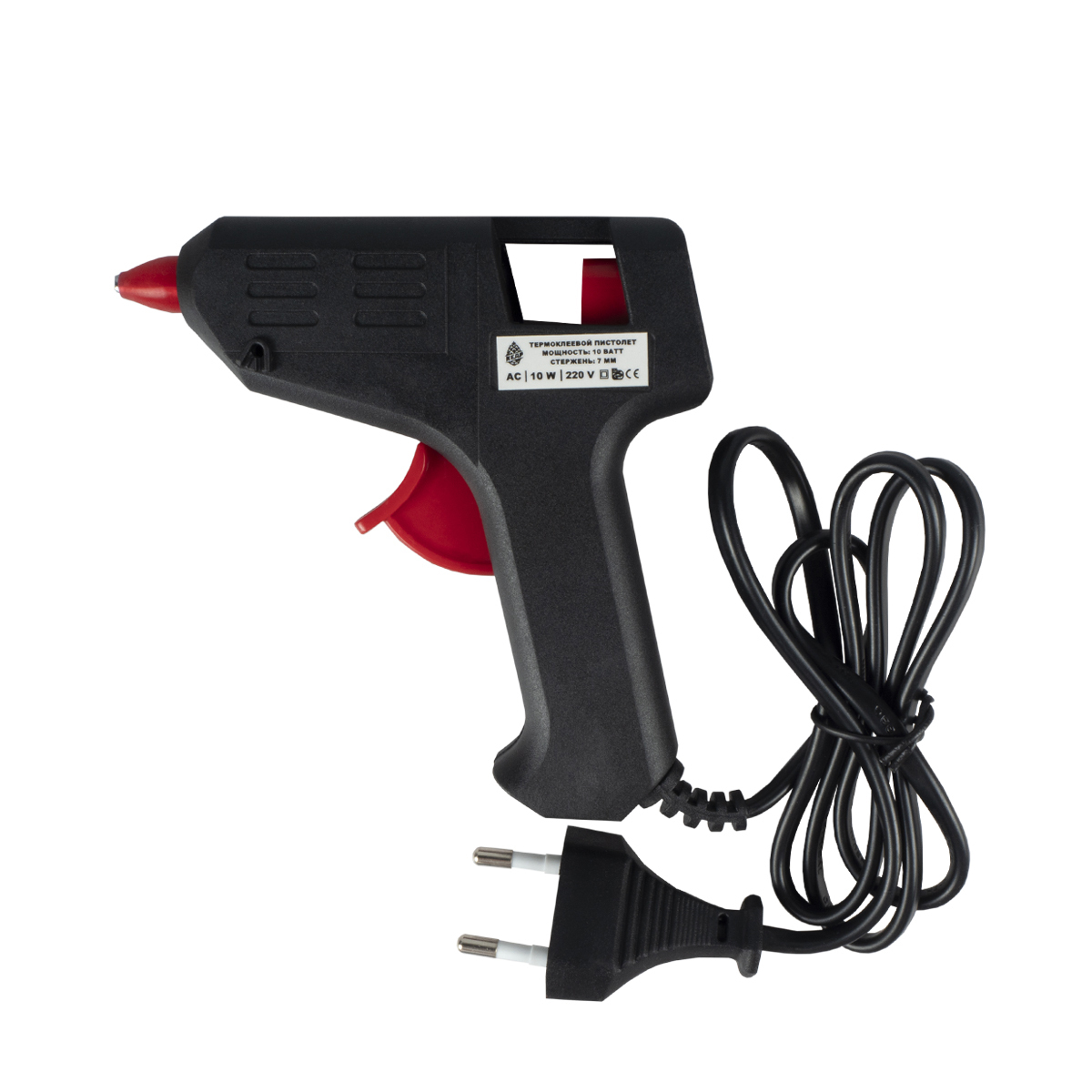 Пистолет мощностью 10 Вт для расплавления и точной дозированной подачи клея. Для работы использует специальные клеевые стержни с диаметром 7 мм. Имеет корпус из высококачественного прочного пластика.