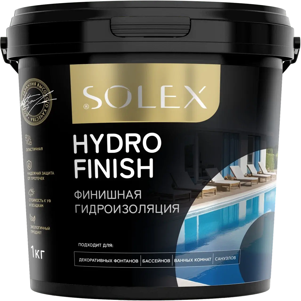 Надежная и безопасная Финишная гидроизоляция SOLEX идеальна для бассейнов, ванных комнат, санузлов и декоративных фонтанов, а так же полов, стен, потолков внутри и снаружи помещений, крыш, фундаментов, подвалов, гидротехнических сооружений, балконов, террас.