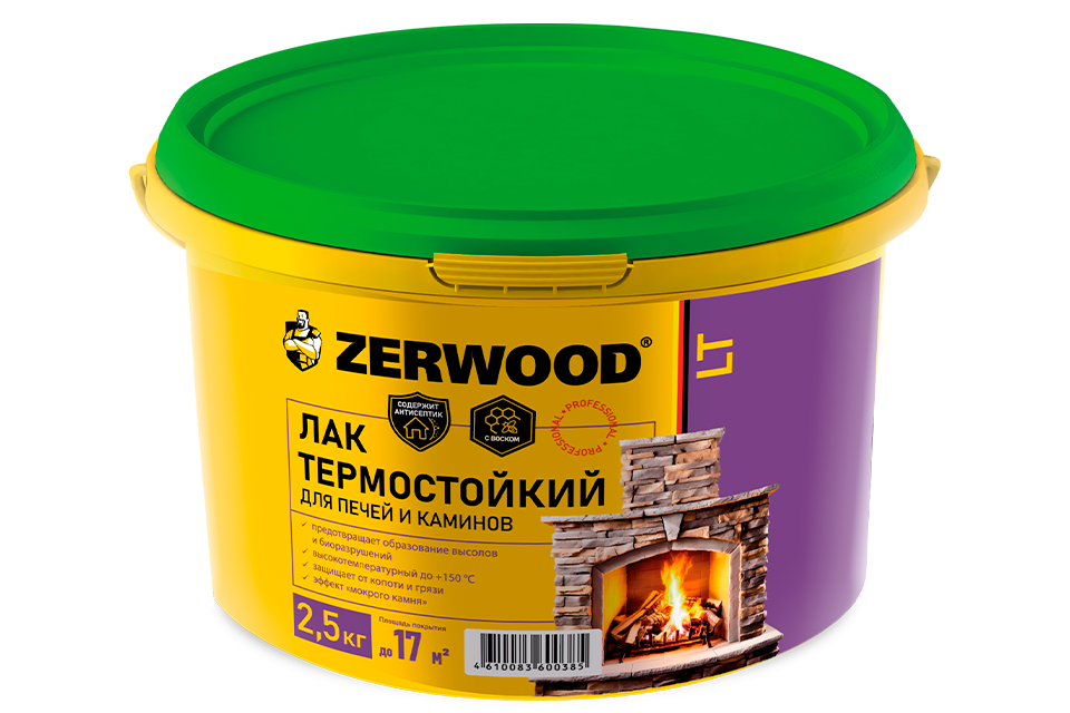 Лак термостойкий глянцевый для печей и каминов ZERWOOD LT